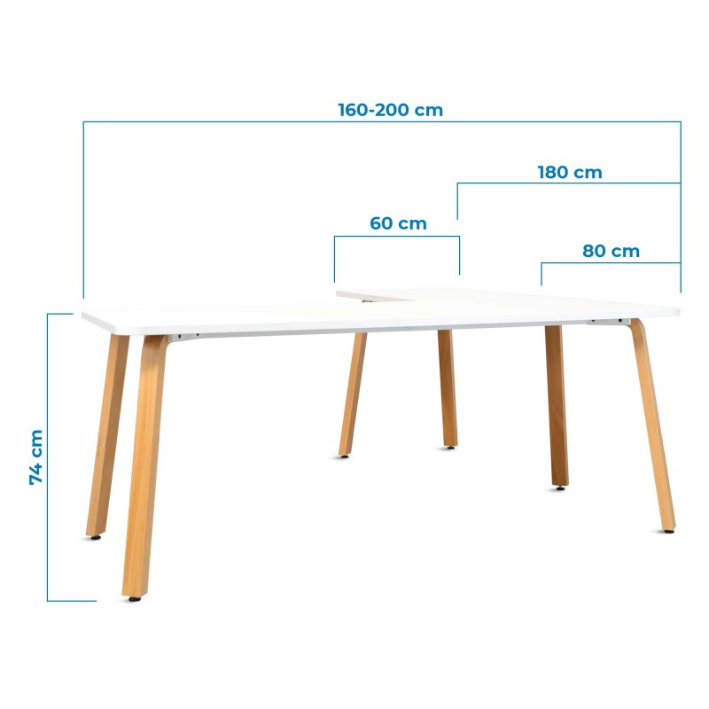 • Ala auxiliar (opcional): Permite ampliar la superficie de trabajo de forma cómoda y equilibrada, ideal para reuniones informales, tareas de apoyo o interacción con compañeros.