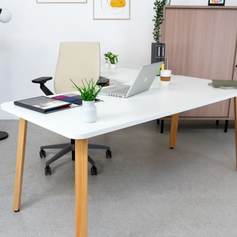 ✔️ Diseño elegante con patas en madera, ideal para oficinas modernas, despachos ejecutivos y espacios colaborativos.